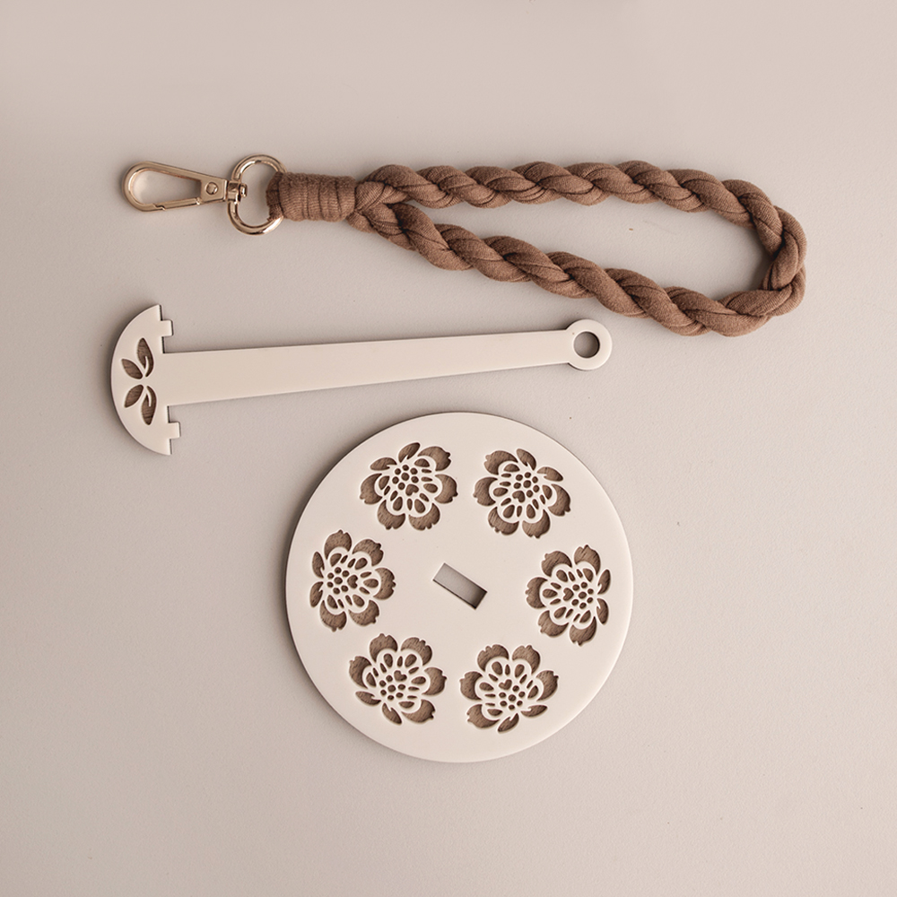 Der blumige Garnhalter aus der Blóma Kollektion ist der beste Freund für Jeden der gerne unterwegs strickt. Er lässt sich einfach zusammenbauen und ist dank flachen Einzelteilen auch perfekt zum Mitnehmen und Verstauen. Ein treuer Begleiter für alle StrickerInnen, die Ordnung und Funktionalität in einem schönen Design lieben.