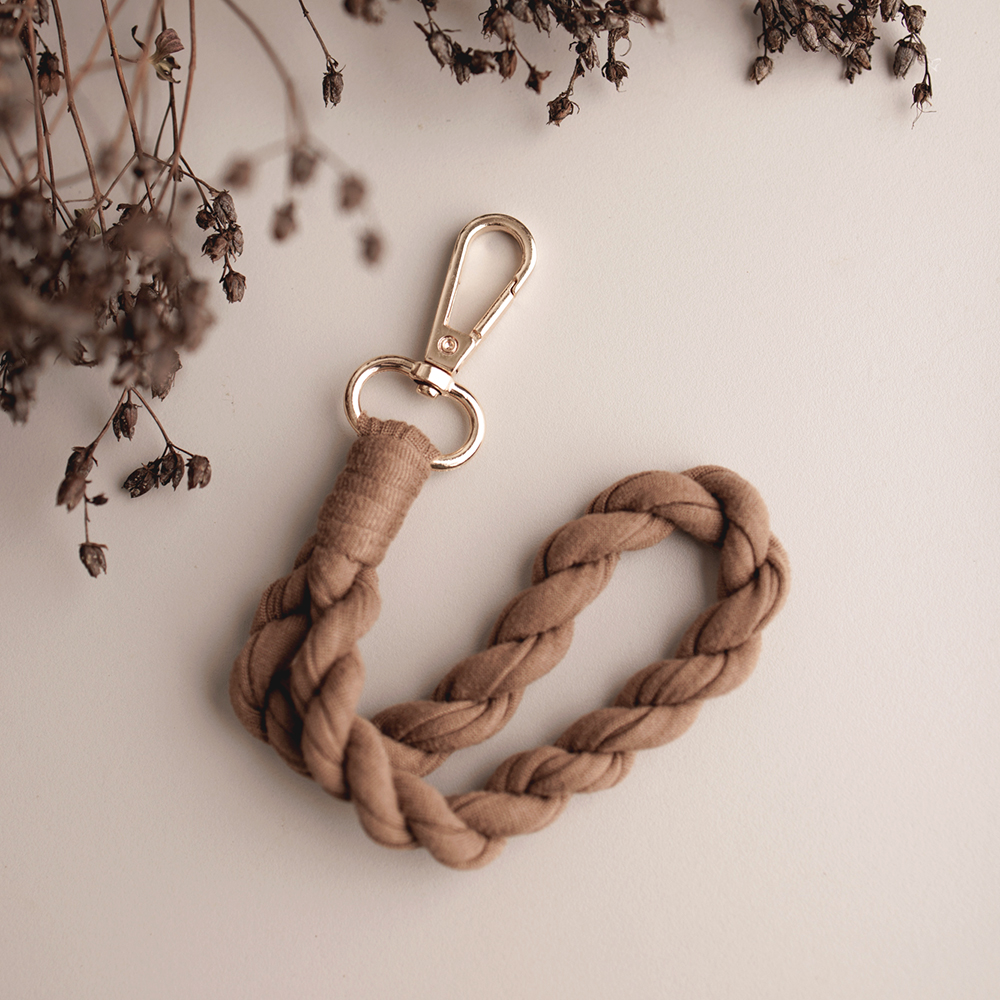 Die praktische Handschlaufe wird ebenfalls von Hand mit weichem recycelten T-Shirt-Garn gefertigt. Dieses sorgt für ein angenehm sanftes Tragegefühl und kann sogar direkt auf der Haut getragen werden.
