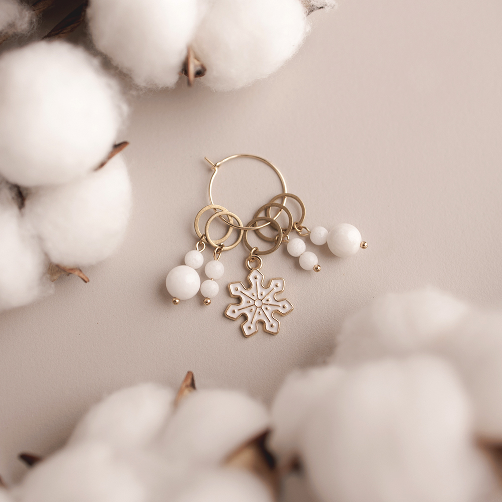 Die Schneeflocken Box beinhaltet einen praktischen Wollkamm, ein winterliches Maschenmarkierer Set und passende Nadelstopper.