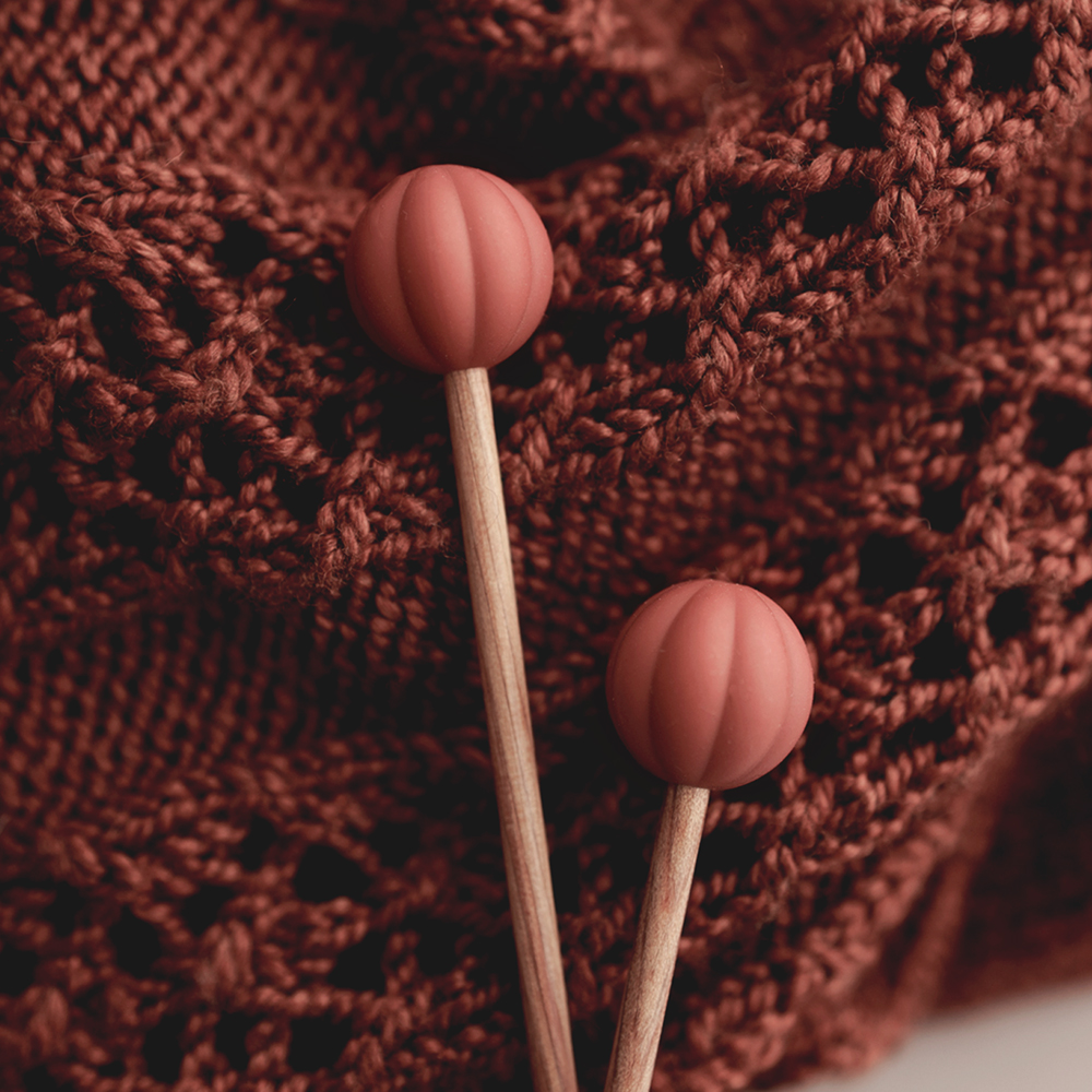 Das Nadelstopper Set Lampion passt auf alle Stricknadeln und kann bis zu einer Nadelstärke von 12 mm verwendet werden. Hierbei verschwinden kleinere Nadelstärken komplett im Nadelspitzenstopper, bei größeren Nadelstärken werden nur die Spitzen verdeckt. Dank flexiblem Silikon bleiben die Nadelstopper genau da, wo sie sein sollen und sind zudem ein hübscher Schutz für deine Arbeit und deine Nadelspitzen.