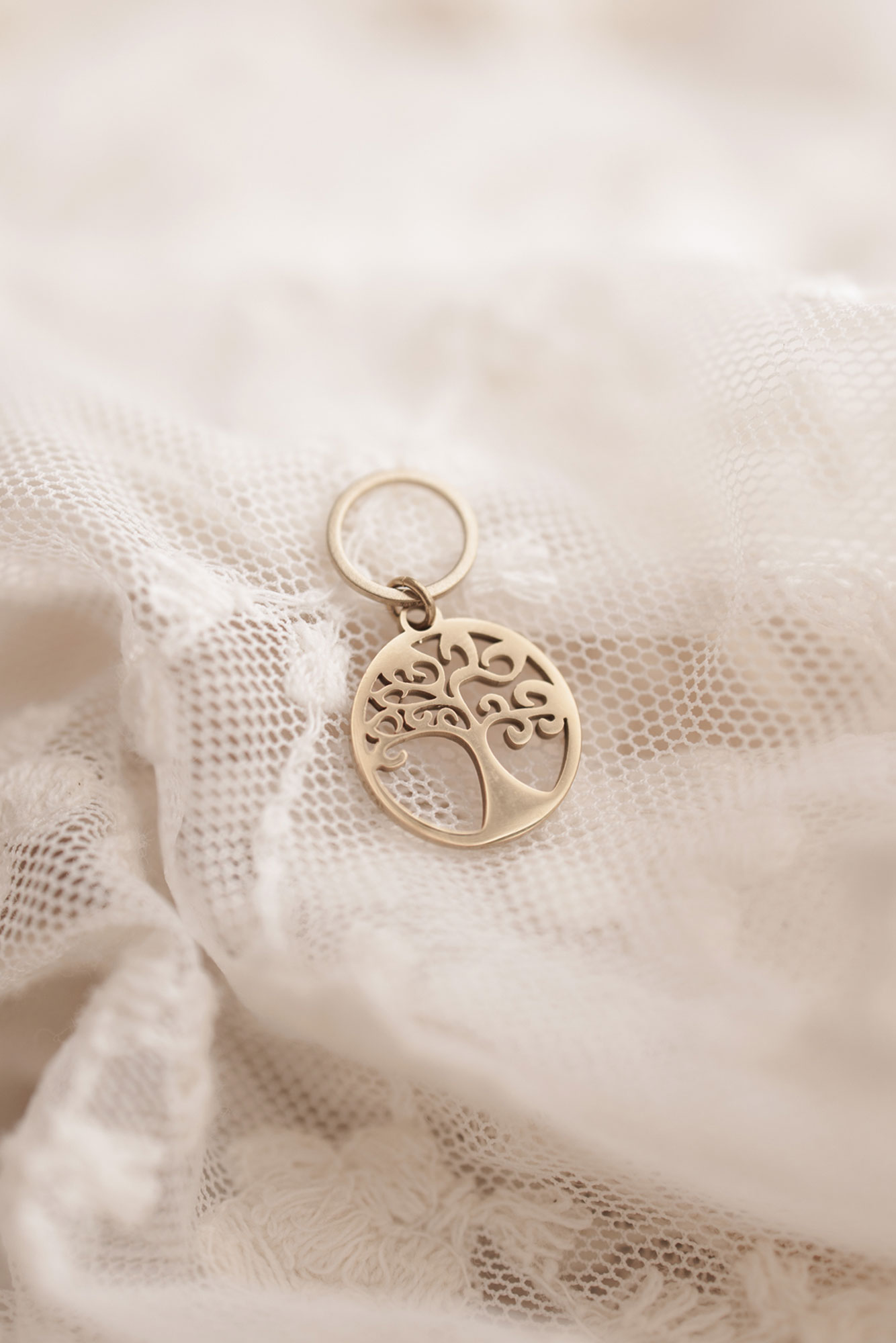 • 1 Maschenmarkierer mit Baum in 18K vergoldet, 15 mm im Durchmesser